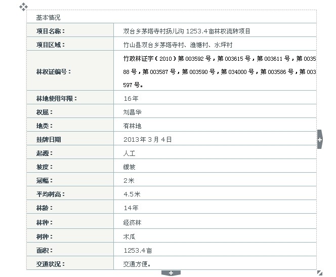 (流转信息公告)刘昌华木瓜林1253.4亩林权流转项目