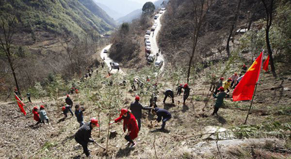 3月2日,双台乡组织政府机关、学校、医院、农林支部党员来到茅塔寺村开展"支部主题党日+植树"活动,当日共义务植树1600余株,以实际行动推进"绿满双台"的开展。今年,该乡计划完成宜林地造林1400亩,绿化通道和四旁植树400亩,退耕还林1200亩,管理核桃基地8000亩、笋竹两用林1000亩。(双台林业站 王华 )